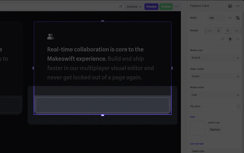 The following example adds a Slot control to the media prop of a Feature Card component.